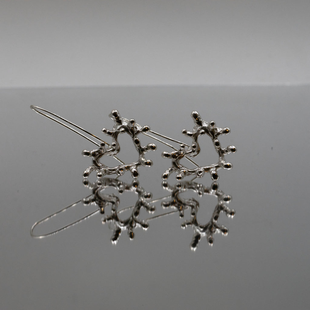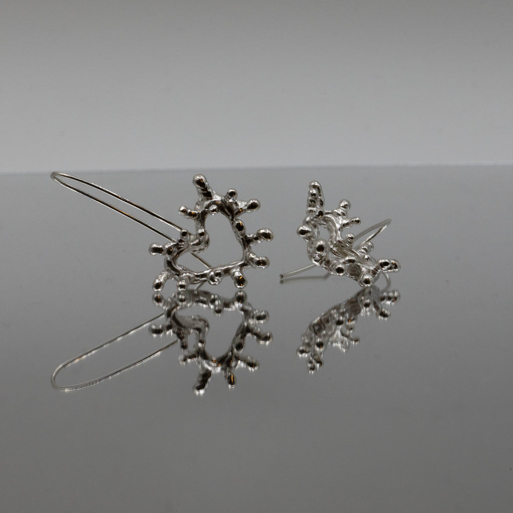 Recycled sterling silver earrings, handmade using lost wax casting.