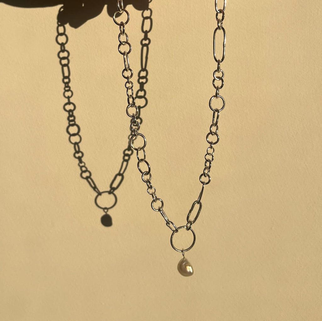 Bespoke Sterling Silver Scrap Chain with Freshwater Keshi Pearl