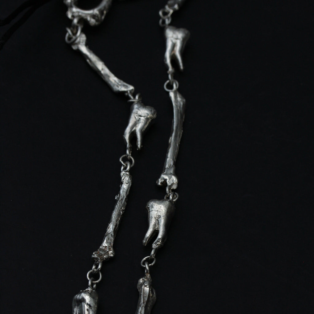 Hand carved and cast Sterling Silver Immortale Signature anatomical tooth and bone links.