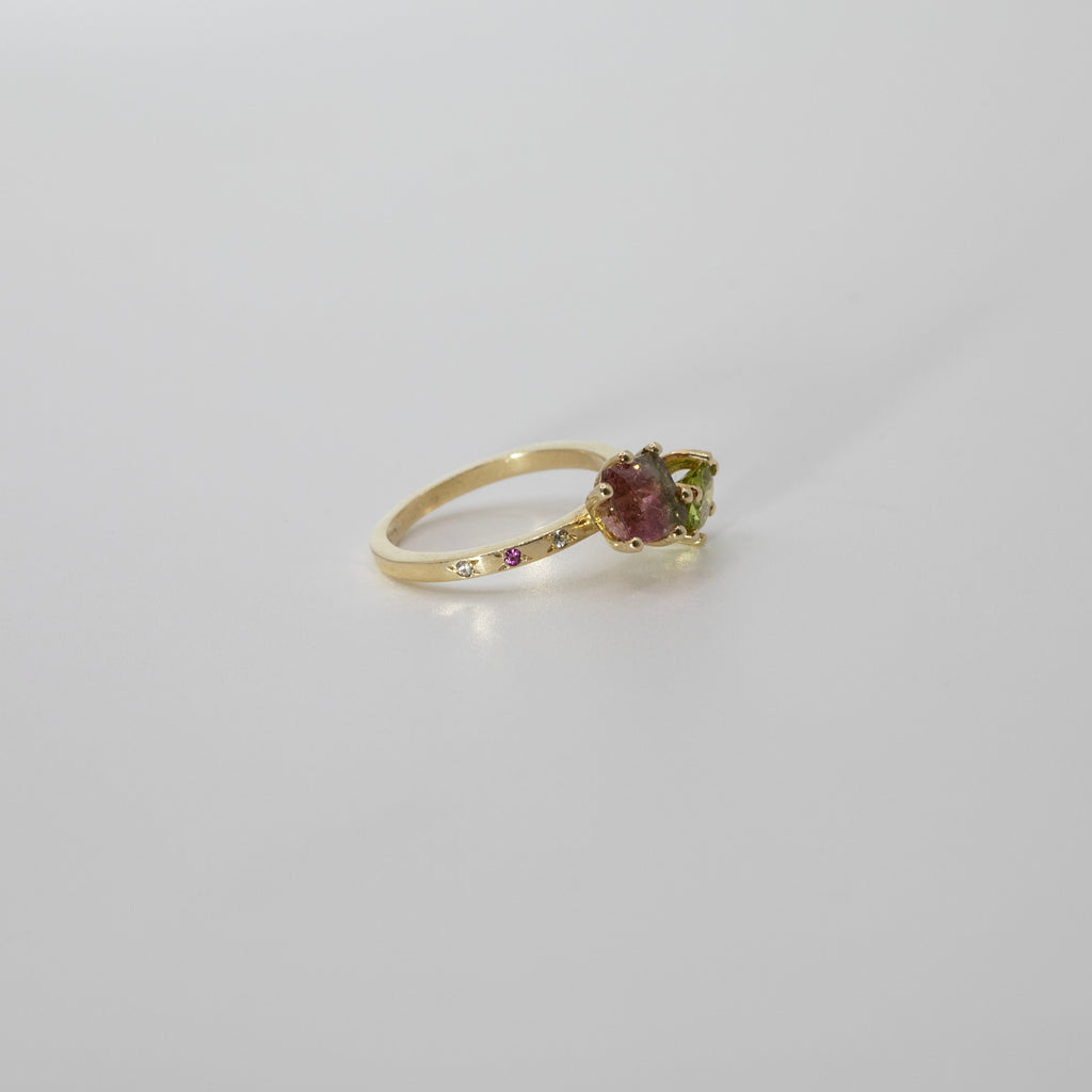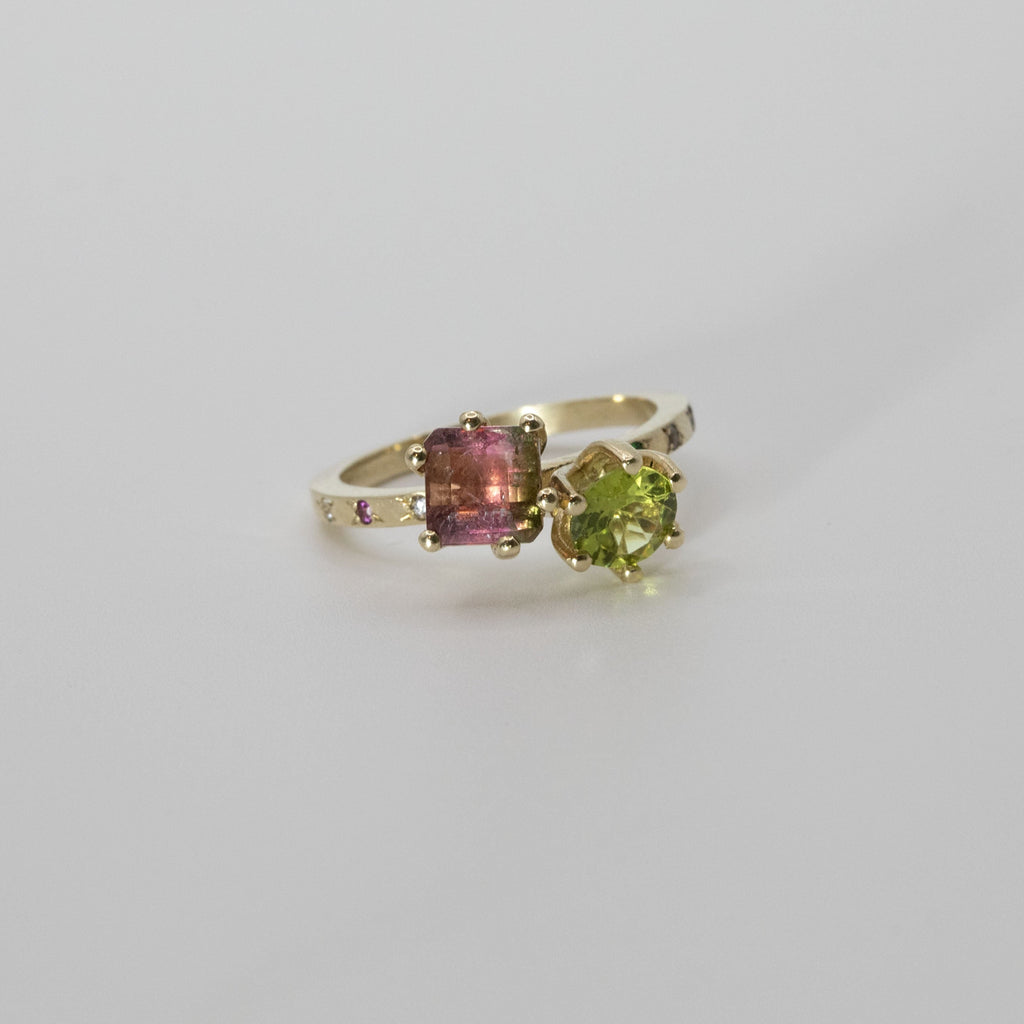 Une -Bespoke - Tourmaline and Peridot Twin Ring